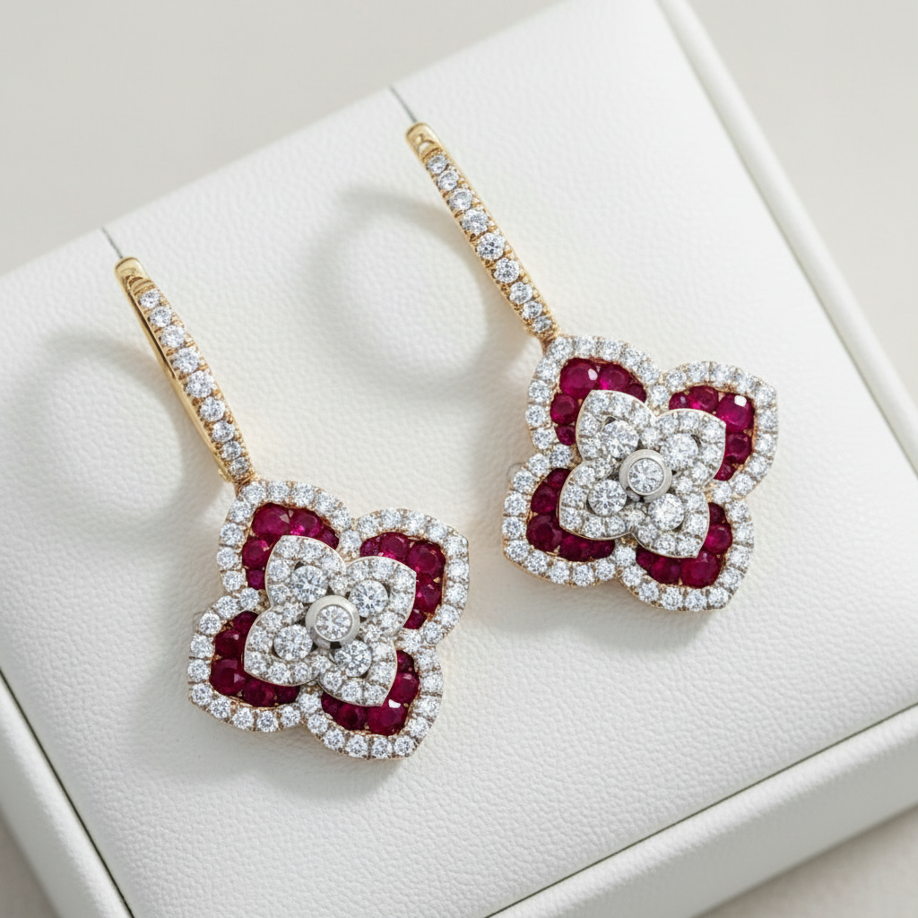 Fine Ruby and Diamond 14K Yellow Gold Dangle Earring