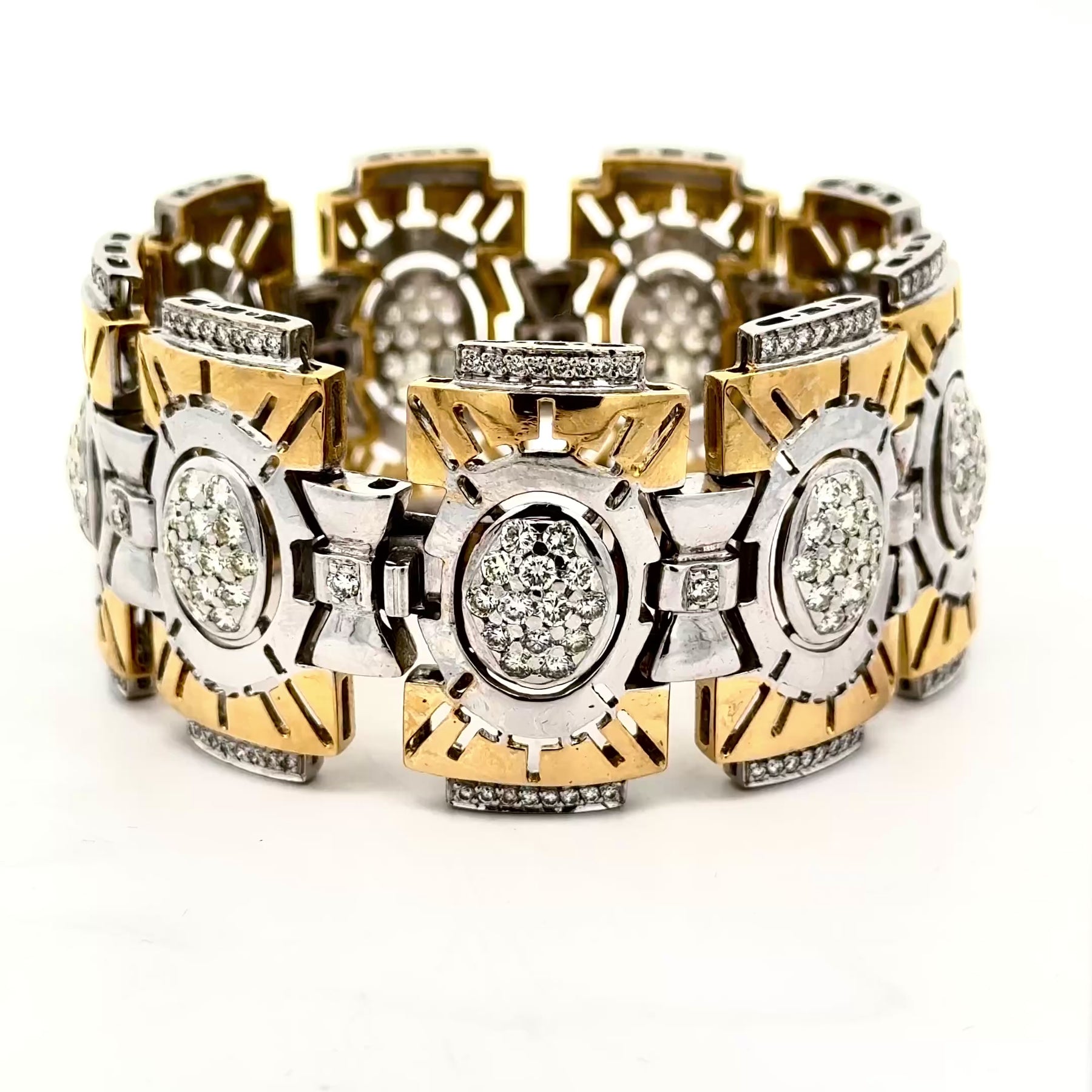 Modern Two Tone 18K Diamond Wide Bracelet